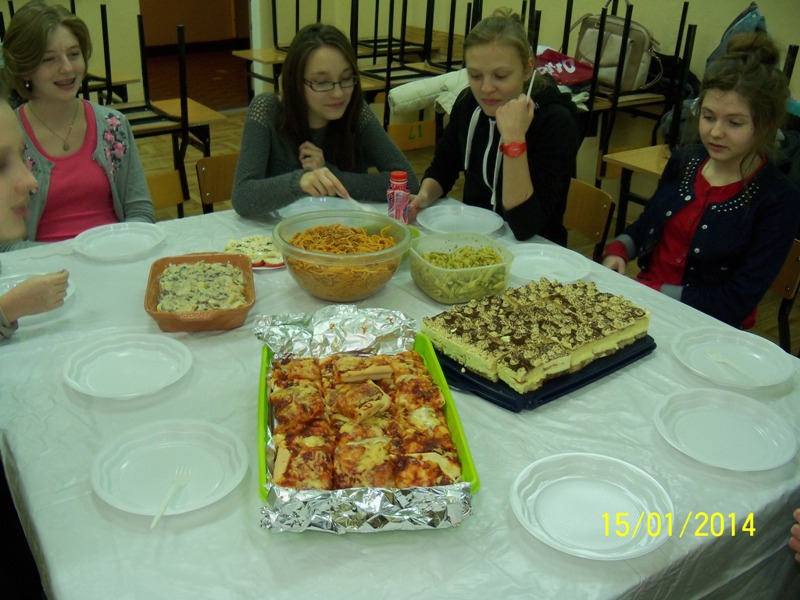 Krajem tematycznym były Włochy- państwo najlepszej światowej kuchni! Jak zwykle obowiązywała jedna zasada- uczymy się poprzez dobrą zabawę. Podczas konsumpcji własnoręcznie zrobionych potraw rozmawialiśmy o kraju, o jego zwyczajach, miastach i ściślej mówiąc klimacie Włoch. Na naszym stole zagościły tradycyjne dania, między innymi pizza, tortellini, oliwki, włoska sałatka, spaghetti, makarony i tiramisu.